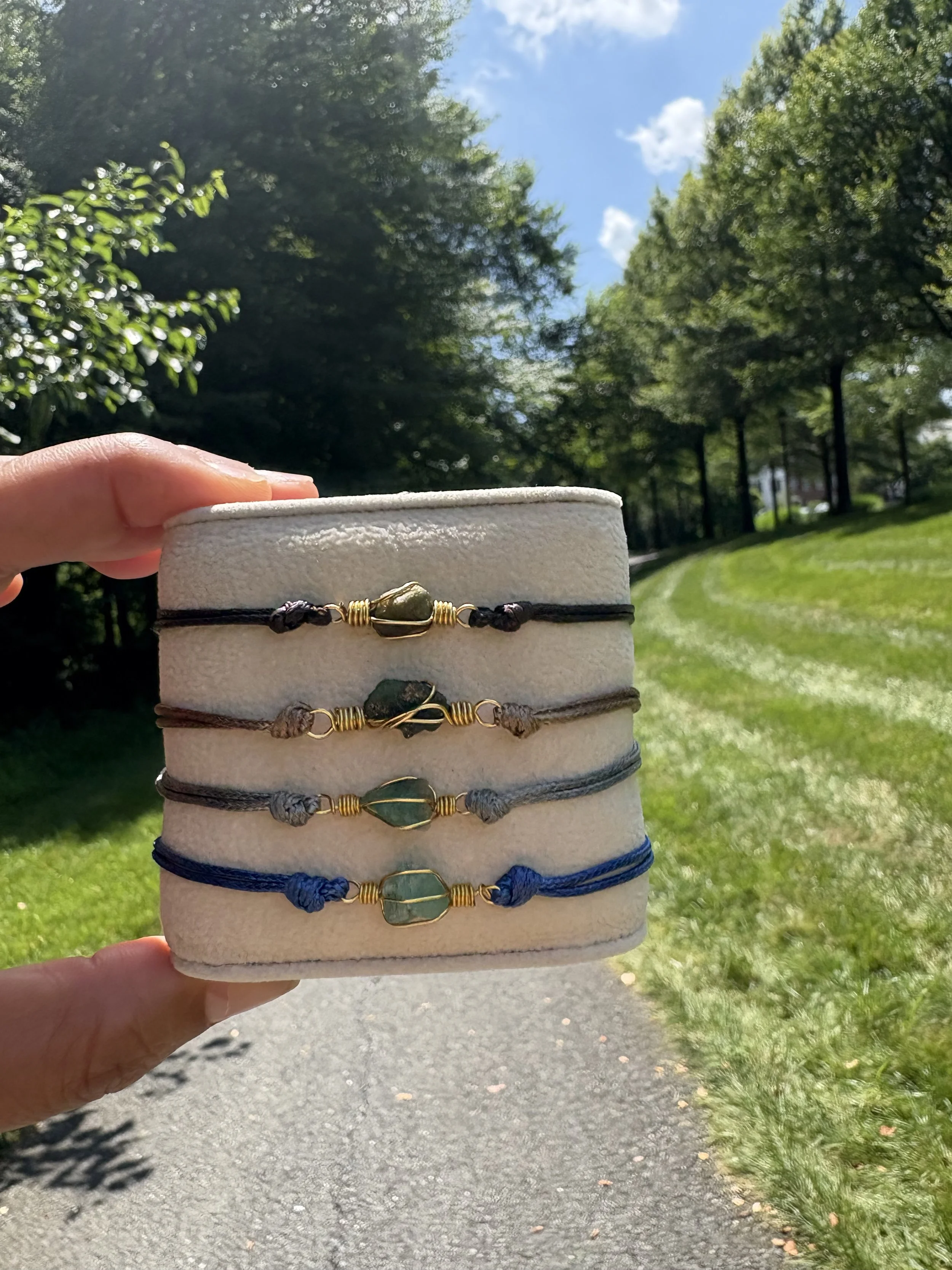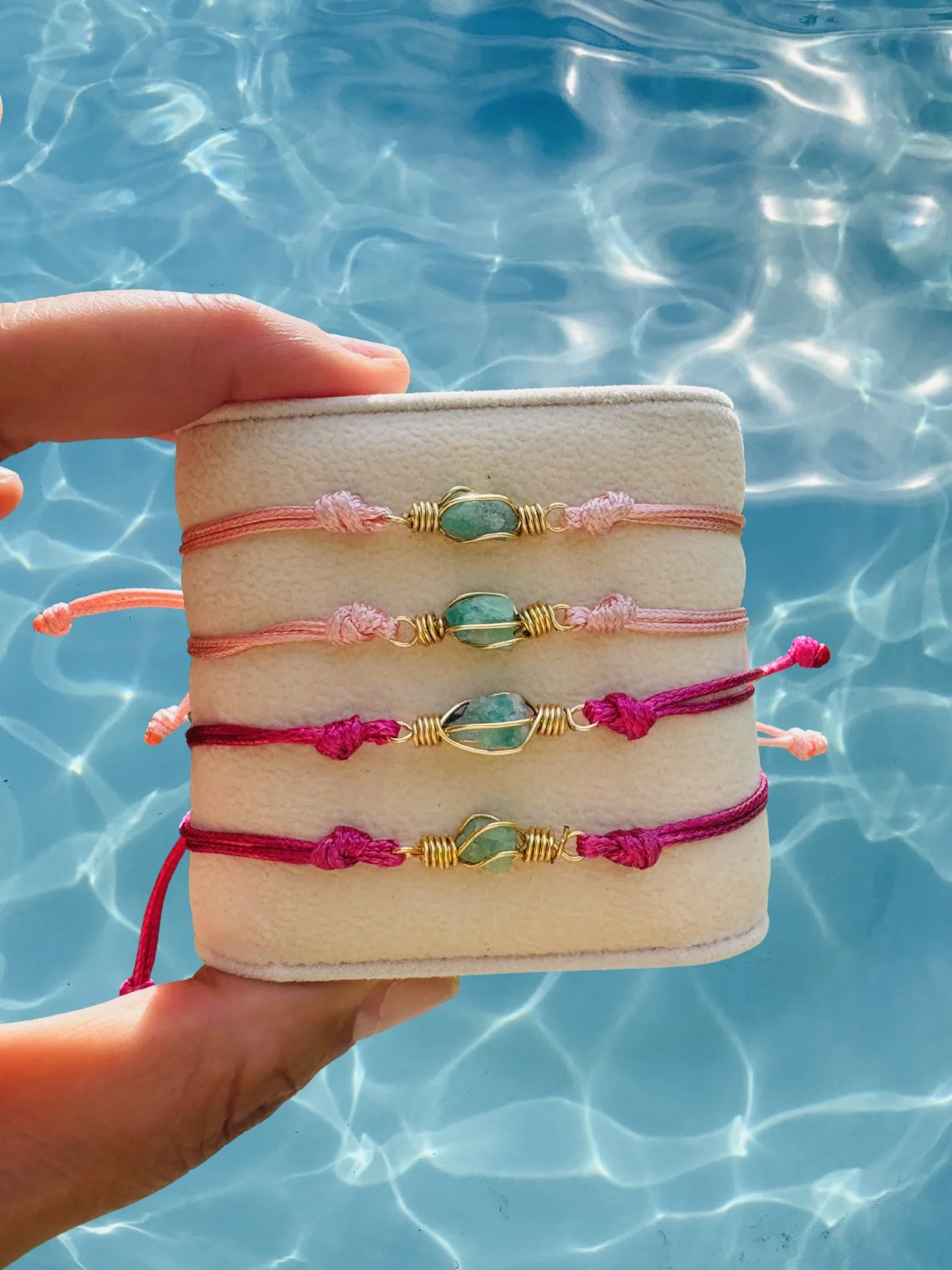 This handmade bracelet features a single hand-set emerald, suspended along a sleek silk cord. Its minimalist design and graceful silhouette make it a timeless piece—perfect worn alone or layered for effortless elegance.”